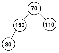 So, when we insert 80, we will have to swap it with the 150 since 150 > 80. 80's parent will now be 70, so we will stop there since 70 < 80.
