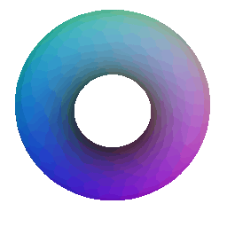 I represented geometry as the zero level set of F(x,y,z) on a voxel grid and extracted a mesh with marching cubes. For a torus: F = (√(x²+y²)−R)² + z² − r².