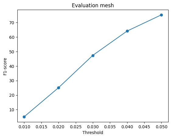 The mesh representation achieves slightly higher F1 scores than voxels and produces more continuous surfaces. However, its fixed initial topology (e.g., an icosphere) constrains deformation, making it difficult to accurately model complex or topologically distinct shapes, such as those containing holes or thin appendages.