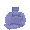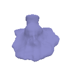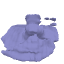 With only 5 input views, VolSDF struggles to reconstruct meaningful structure - the geometry collapses into a roughly spherical blob, and the rendered appearance becomes a blurry mess with little spatial consistency. NeRF, on the other hand, captures a faint but more globally consistent shape: although the rendering appears ghostly and semi-transparent, the overall appearance aligns better with the true scene.