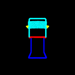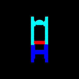 For sofas, the seat part (red), the leg part (blue), and the armrest (yellow) are somewhat ambigious. It is very difficult to set a good boundary between these three parts.