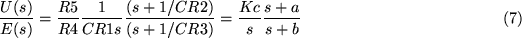These three circuits together provide the inverting adjustable integral controller and lead compensator represented by the dotted box in the block diagram. It's transfer function (ignoring the extra negative sign) is:
